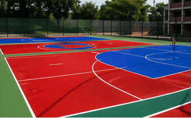 Development of high-performance multi-sport outdoor courts with precision acrylic surface finishing and professional-grade markings.