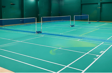 Installation of indoor badminton courts with high-performance synthetic flooring and tournament-standard layout.